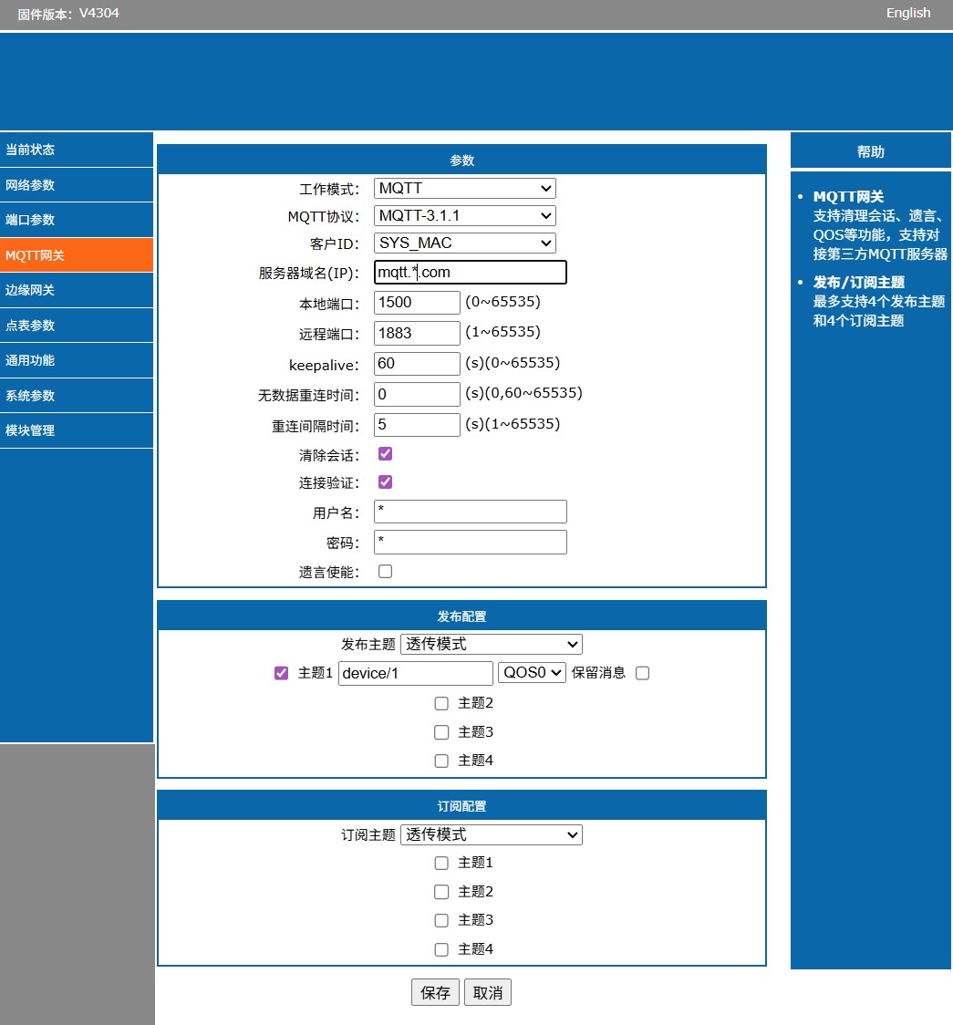 MQTT 网关配置